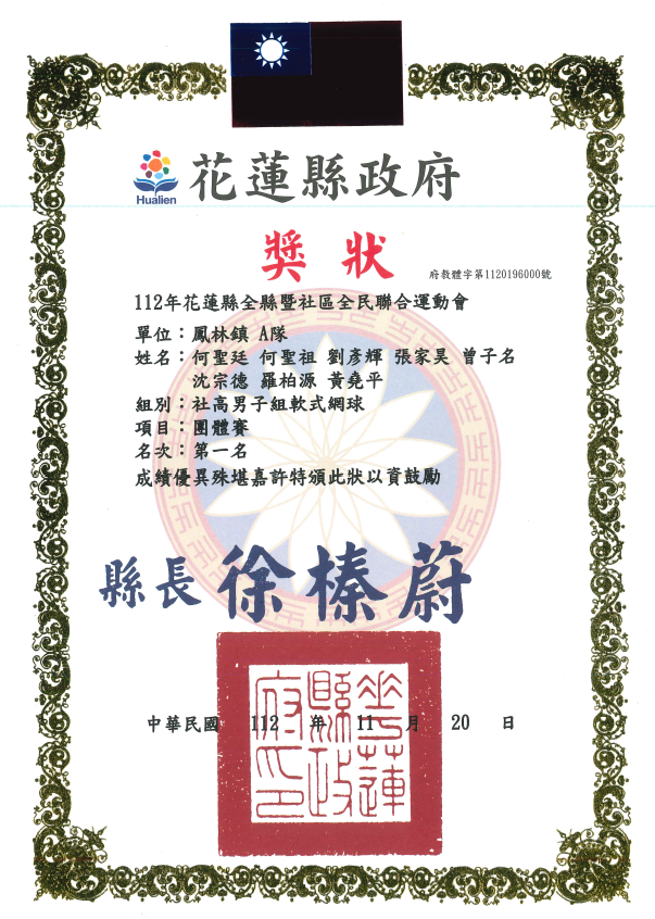 恭賀縣運軟網-沈宗德教練社高團賽第一名