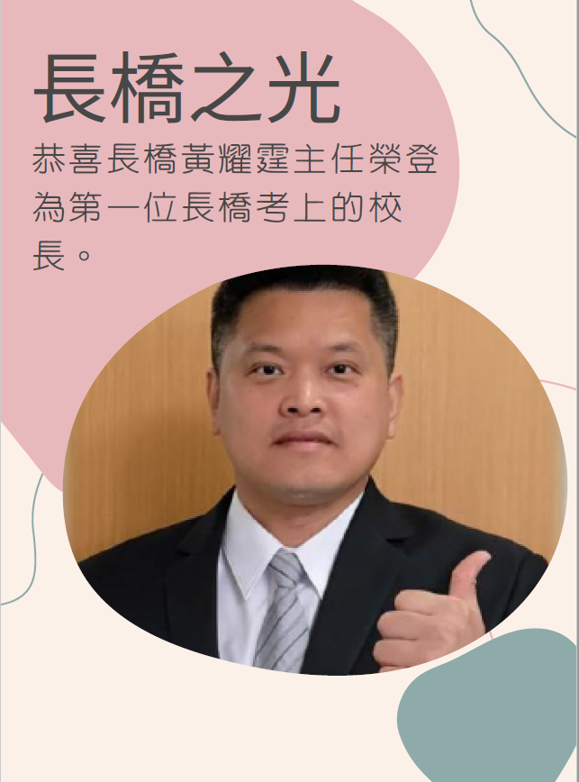 恭喜長橋黃耀霆主任榮登為第一位長橋考上的校長。
