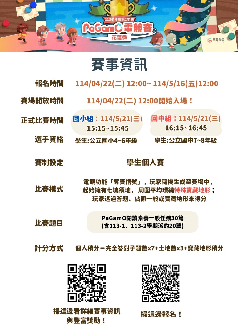 花蓮縣 113 學年度 PaGamO 素養品學堂電競賽